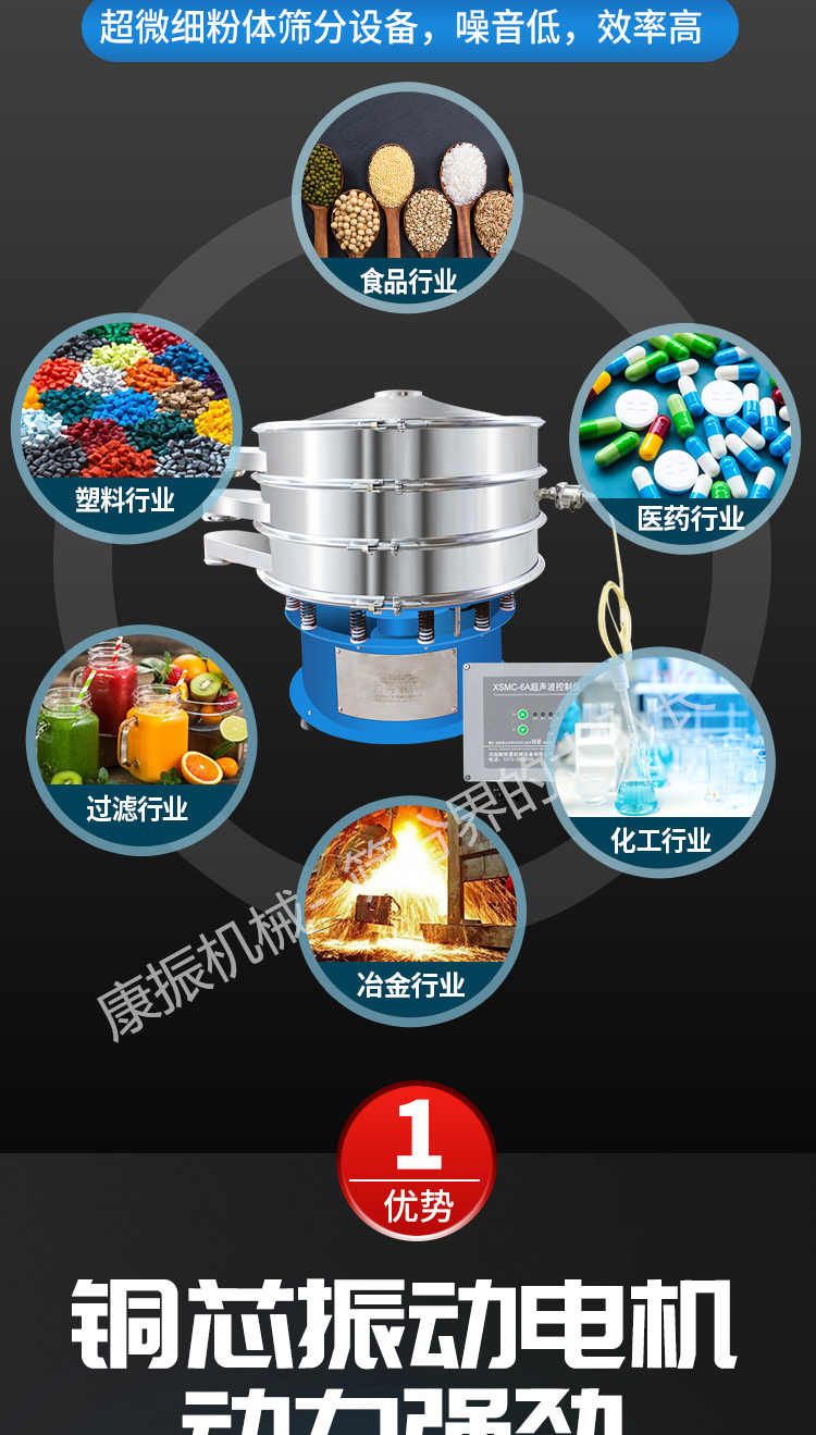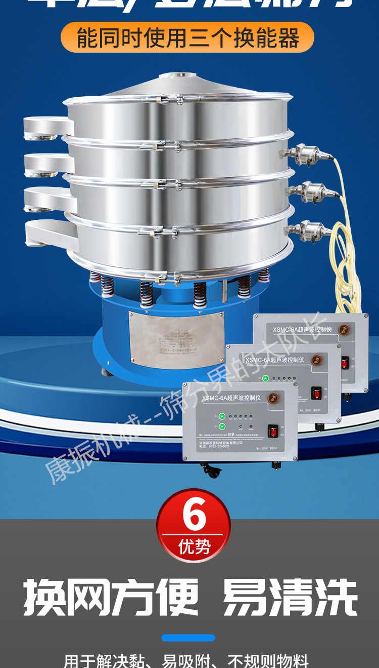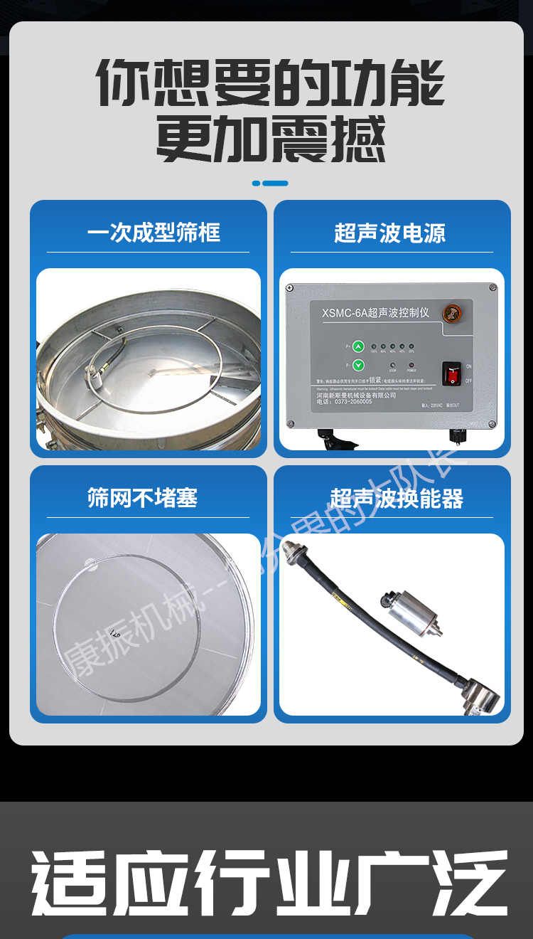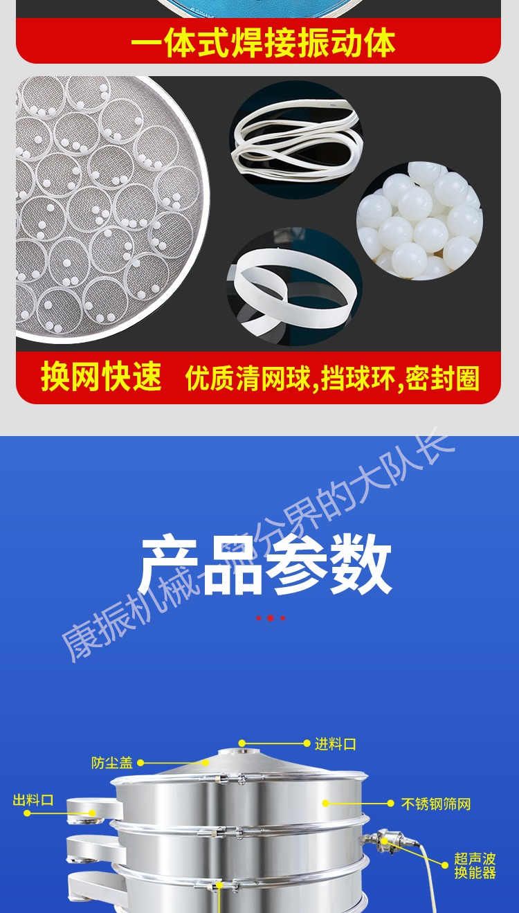 產品描述:河南康振機械有限公司主要生產經營:超聲波振動篩,直線振動篩,振動設備,振動過篩,不銹鋼振動篩,振動平臺廠家,脫水篩,食品篩分機,醫藥篩分機,實力制造廠家,服務熱線:13903732065