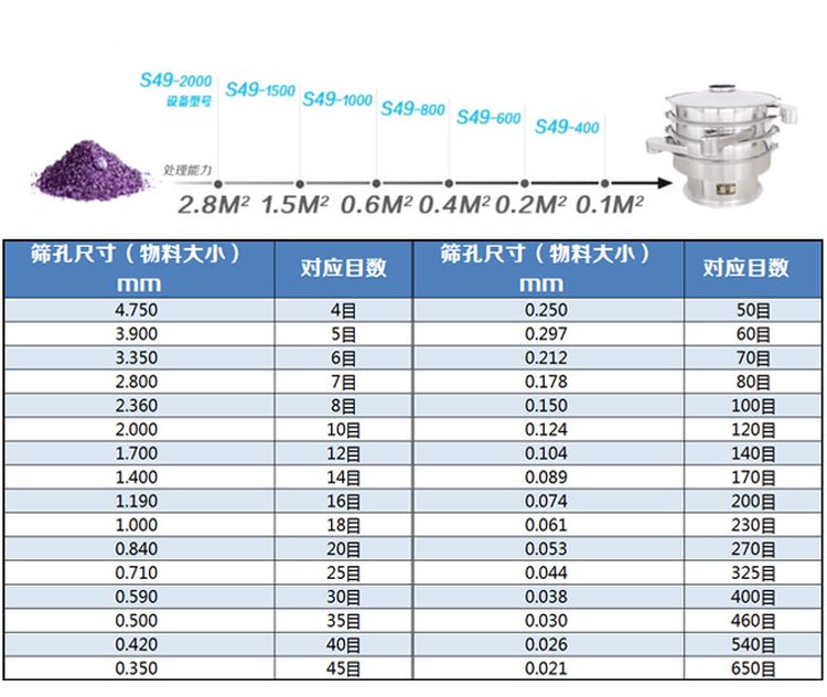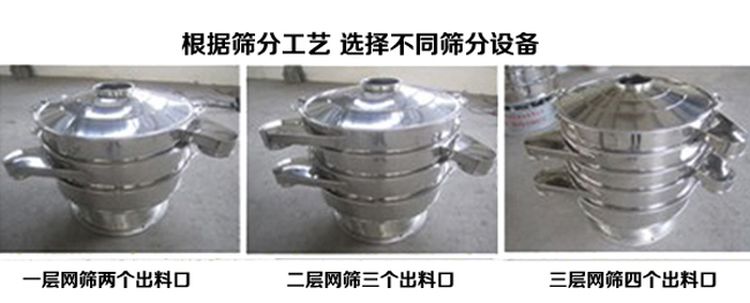 任何顆粒、粉末、粘液一定范圍內均可篩選。篩分細至500目或0.028mm, 過濾小可至5微米。分級篩選,可篩一至五層篩網,能同時進行二至六個等級的分選或過濾。