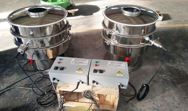 超聲波振動篩是將220V、50Hz或110V、60Hz電能轉化為36KHz的高頻電能,輸入超聲換能器,將其變成36KHz機械振動,產生的功率超聲波使篩網作高頻振動。篩網上的物料在作低頻旋振運動的同時,疊加上超聲振動,既可防止網孔堵塞,又可使篩分機提高產量和質量,從而達到快速篩分和清網的目的,使超微細粉篩分成為易事。該系統在傳統的振動篩基礎上在篩網上引入一個低振幅、高頻率的超聲振動波(機械波),以改變超微細分體的篩分性能。特別適合高附加值精細分體的用戶使用。