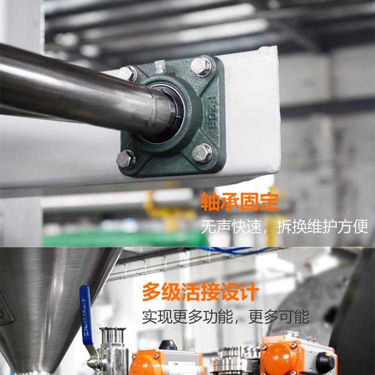 物料料斗:可以結合手套箱設計,實現對粉塵和氣體與操作者的100%隔絕;可選擇流化器,并可在料斗下加裝破塊器,也可對料斗進行稱重,實現計量功能。