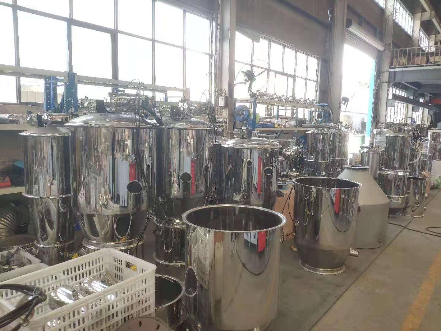 真空上料機是用旋渦氣泵抽氣,使吸料嘴進口處及整個系統處于一定的真空狀態,粉粒料隨同外界空氣被吸入料嘴,形成料氣流,經過吸料管到達料斗,在料斗中進行氣、料分離。分離后的物料進入受料設備。送料——放料是通過氣動三通閥不斷地開、閉來完成的,而氣動三通閥的開閉是由控制中心來控制,上料機中裝有壓縮空氣反吹裝置,每次放料時,壓縮空氣脈沖反吹過濾器,把吸附于過濾器表面的粉末打落下來,以保證吸料能正常運行。