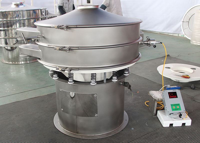 特氟龍振動篩主要組成部件有:底桶、立式振動電機、減振彈簧、篩框、篩網、超聲波清網裝置、防塵蓋組成。該設備是由超聲波諧振電源、振蕩器、共振環組成。超聲波諧振電源產生的高頻電振蕩由振蕩器轉換成高頻正弦形式的縱向振蕩波,這些振蕩波傳到共振環上使共振環產生共振,然后由共振環將振動均勻傳輸至篩面。篩網上的物料在做低頻三次元振動的同時,疊加上超聲波振動,既可防止網孔堵塞,又可提高篩分產量和質量。