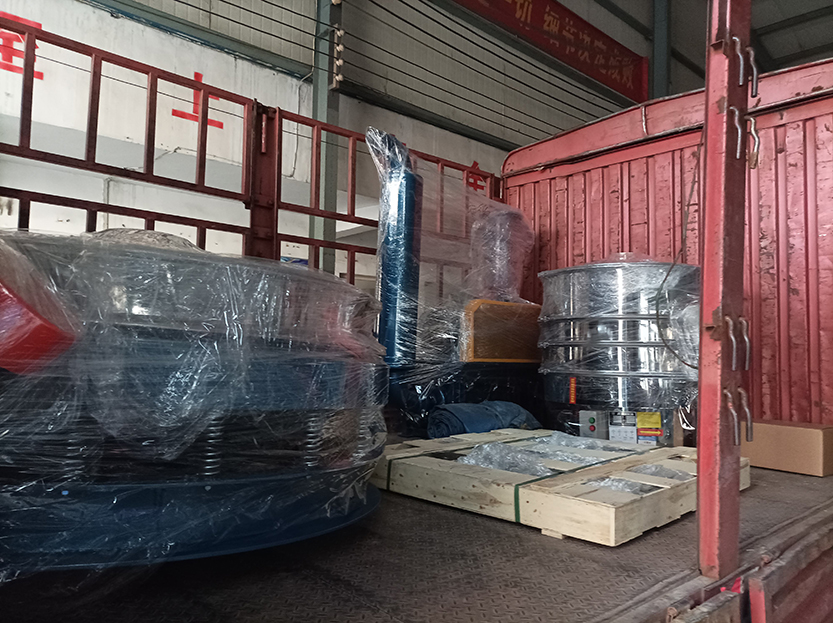 直線振動篩采用雙振動電機驅動,當兩臺振動電機做同步、反缶旋轉時,其偏心塊所產生的激振力在平行于電機軸線的方向相互抵消,在垂直于電機軸的方向疊為一合力,因此振動篩的運動軌跡為一直線。其兩電機軸相對篩面有一傾角,在激振力和物料自重力的合力作用下,物料在篩面上被拋起跳躍式向前作直線運動,從而達到對物料進行篩選和分級的目的。可用于流水線中實現自動化作業。具有能耗低、效率高、結構簡單、易維修、全封閉結構無粉塵溢散的特點。篩分目數325目,可篩分出7種不同粒度的物料。