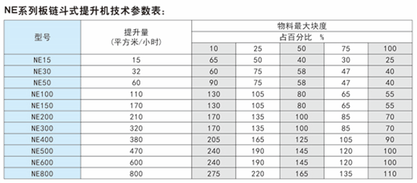 NE系列板鏈斗式提升機是一種新型的斗式提升機,其采用板鏈傳動,區別于老型號TB系列板鏈斗式提升機,其命名方式采用提升量而命名而非斗寬。如NE150指的是提升量為150噸一小時而不是斗寬150。NE系列斗式提升機有著很高的提升機效率,根據提升速度不同還分有NSE型號及高速板鏈斗式提升機。